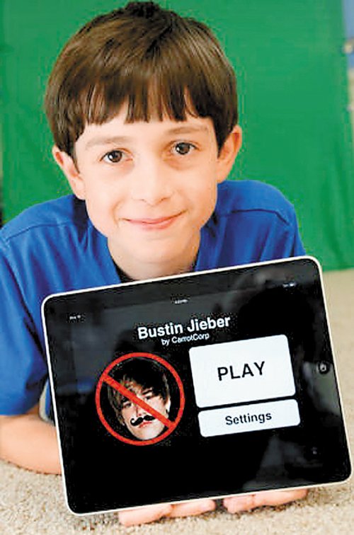 托马斯创作的第二个游戏程序则是个捉弄加拿大少年流行天王贾斯汀比伯的“打鼹鼠”游戏,它和传统的“打鼹鼠”游戏相似,只不过该游戏中用手指敲打的并不是鼹鼠,而是加拿大少年流行天王比伯的脑袋瓜。这款游戏程序被上传到苹果公司在线应用程序商店后,用户每下载一次的价格是99美分,目前已有至少1300多名苹果手机用户购买和下载了该程序,而该游戏程序的编写者托马斯也获得了至少1000美元的“收入”。为了奖赏自己,托马斯用部分“收入”购买了一台Xbox游戏机。托马斯说:“我之所以创作了这个游戏,是因为很多学校中的学生都不喜欢贾斯汀比伯。”