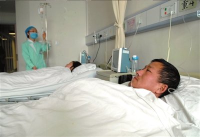 17日,两位患者接受肾脏移植手术后,正进行恢复治疗。新华社发