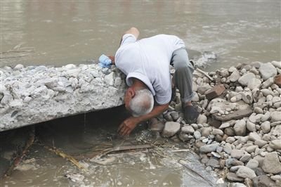 昨日下午,王荣耀站在拒马河畔寻找儿子王宏利的下落。