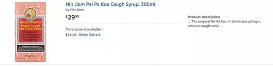 之前在美国卖10来刀的枇杷膏价格直接翻了几倍,在网上是30来刀,在卖中国商品的超市里,甚至一度狂飙到70刀(大概450人民币),但仍旧卖到脱销。