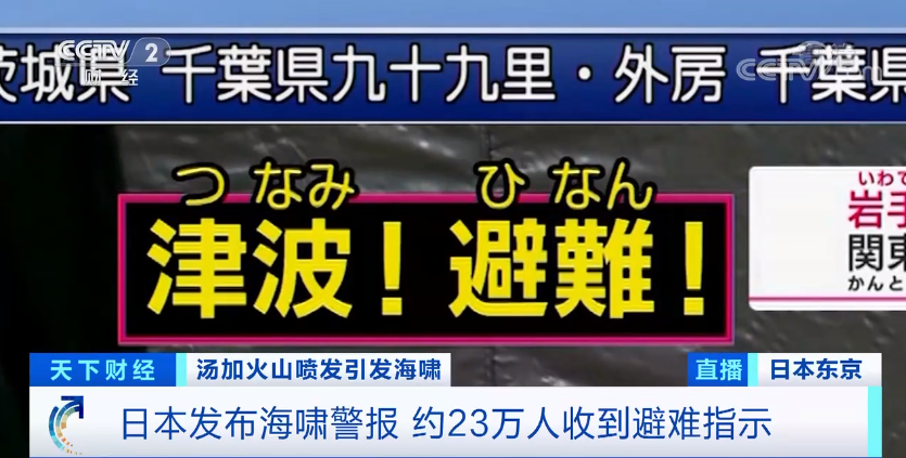 受汤加群岛大规模火山喷发的影响,16日,日本气象厅对日本太平洋沿岸地区发布海啸警报,至少有23万人接到避难指示。