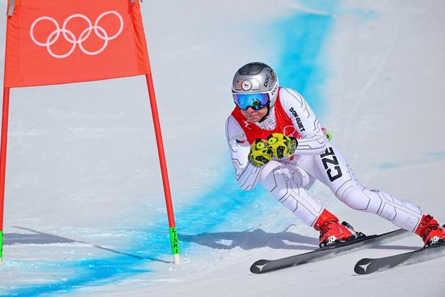 2月11日,捷克选手埃丝特·莱德茨卡在北京2022年冬奥会高山滑雪女子超级大回转比赛中。新华社记者陈益宸摄
