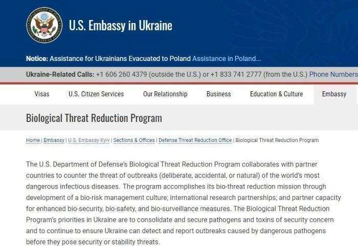 美国驻乌克兰大使馆网站对“生物威胁降低项目”的介绍。图源:美驻乌使馆网页