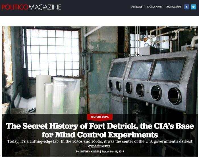 “德特里克堡秘史,美国中情局精神控制实验的基地”。美国政治新闻网站(Politico)报道截图