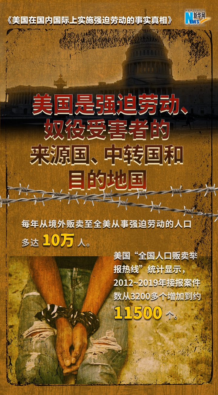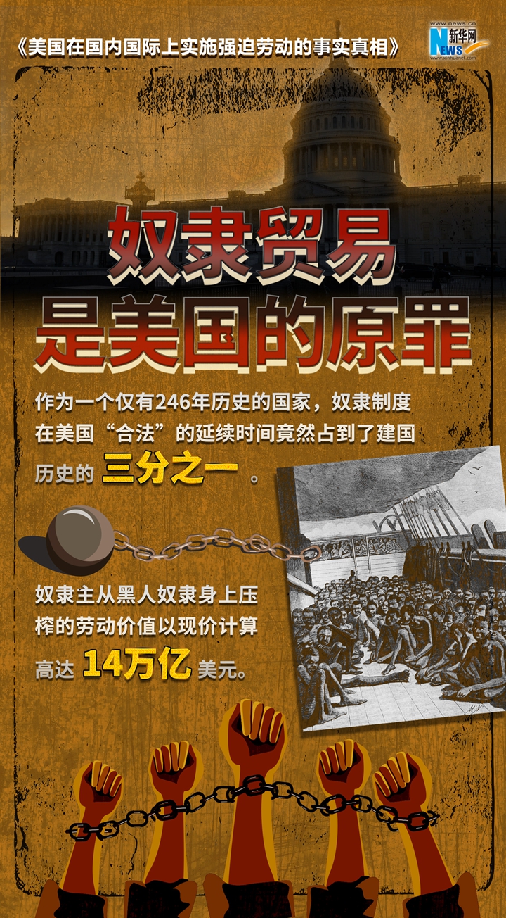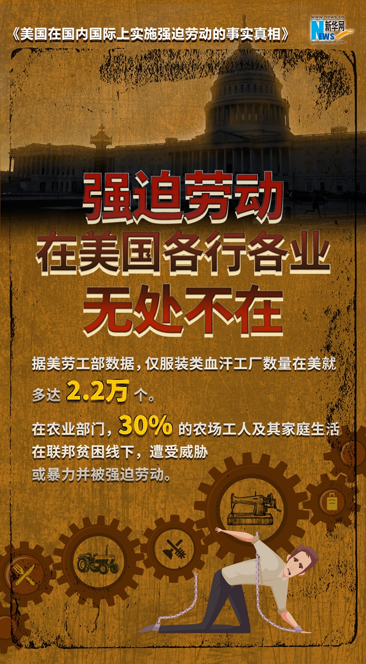 新华网消息 美国政府打着人权的幌子,炮制所谓中国在新疆实行“强迫劳动”等世纪谎言,诋毁中国新疆人权状况,破坏新疆民生发展。到底是谁在搞强迫劳动?《美国在国内国际上实施强迫劳动的事实真相》报告以详实的数据和触目惊心的事实,起底美国强迫劳动真相,戳穿美方“以疆制华”图谋。