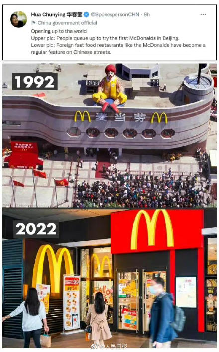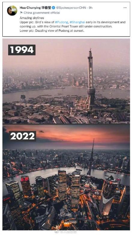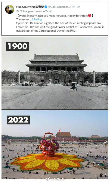 人民日报讯 10月1日,中华人民共和国成立73周年。北京时间当日晚间,华春莹在推特上连发十二组对比照片,细数中国在政治、经济、外交、军事,以及太空探索、脱贫攻坚等多领域取得的举世瞩目的成就。12组中国今昔对比照 为你向前发展的每一步都感到自豪!