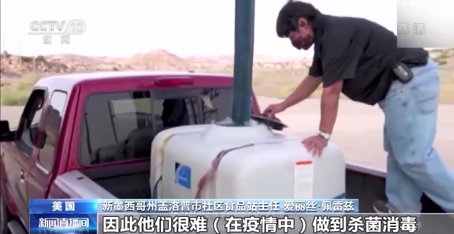 新墨西哥州盖洛普市社区食品站主任 爱丽丝·佩雷兹:住在保留地的人们很多情况下没有电力、没有自来水,因此他们很难(在疫情中)做到杀菌消毒。