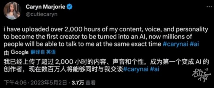假设Caryn的180万粉丝中,有2万人愿意为之付费,成为固定用户,那么Caryn AI每月将能创造500万美元的收入,一年就是6000万美元(约4.16亿元)。这个数字将超过国内许多上市公司的收入。