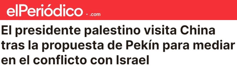 《西班牙日报》网站报道称,巴勒斯坦总统阿巴斯的访华,让中国作为全球和平缔造者的角色作用以及中国在中东的足迹愈发凸显。