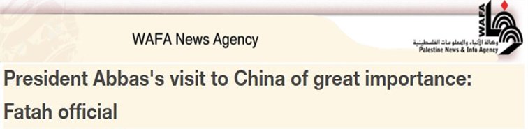 巴勒斯坦通讯社近日援引巴勒斯坦官员阿巴斯·扎基的话说,阿巴斯总统此次访华,具有特殊和伟大的意义。