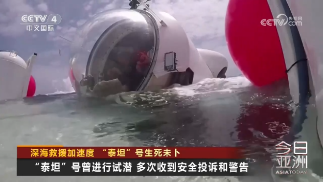CCTV4《今日亚洲》消息:一艘载着5名游客前往“泰坦尼克”号残骸的潜水器“泰坦”号在开始前往大西洋深处不久后失踪。这艘潜水器是海洋之门探险公司开展的为期八天的探险活动的一部分。“泰坦尼克”号残骸的两个主要部分位于约2.5英里深的海底处。“泰坦”号会带着游客下潜到残骸附近近距离观看这艘举世闻名的船,每位游客将为这次旅行支付25万美元。