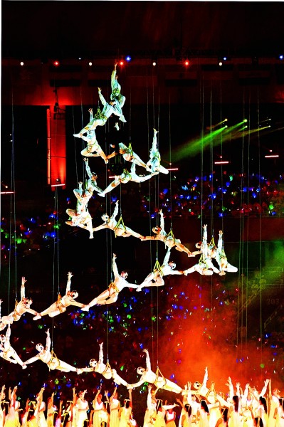 成都大运会开幕式现场的文艺演出。记者郭俊锋摄/光明图片