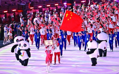 欢快而热烈的入场式,伴随着全球五大洲具有代表性的民歌及经典旋律。“民歌是全人类共同的非物质文化财富,跨越时空,广为流传,为各国各民族所喜爱。”成都大运会开幕式音乐总设计杨帆说,音乐团队对这些音乐进行全新的改编与再创作,力求体现一种对全人类艺术的尊重与来自新时代中国的世界胸怀。