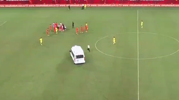 下半场,双方继续对峙,在78分钟时,李帅争顶时与对手头碰头倒地不起,救护车直接进场将李帅带离球场。