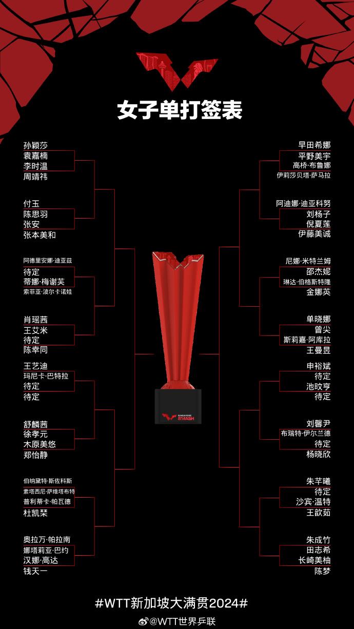 北京时间3月8日下午,WTT新加坡大满贯赛抽签仪式在新加坡举行,中国球员樊振东、孙颖莎作为球员代表出席抽签仪式。男单签表,樊振东首轮对阵卢伟,女单签表,孙颖莎首轮挑战袁嘉楠。央视体育将会转播部分比赛。