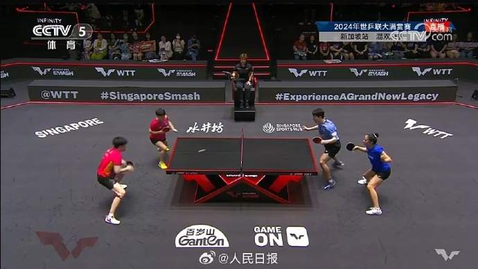 刚刚,WTT新加坡大满贯2024混双决赛,中国队组合王楚钦、孙颖莎3比1战胜韩国队组合,夺得混双冠军。祝贺“莎头”组合!