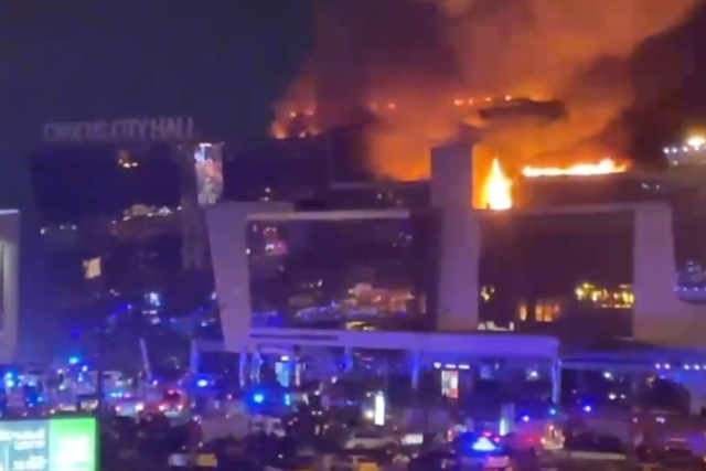 俄罗斯媒体报道称,当晚在位于克拉斯诺戈尔斯克市的“番红花市政厅”(Crocus City Hall)音乐厅一场音乐会开始前,观众已经入座。突然几名身份不明的人闯入音乐厅并开枪射击。音乐厅随后发生爆炸起火并冒出浓烟,楼顶几乎被大火吞没。事件发生后,人们纷纷逃离音乐厅。