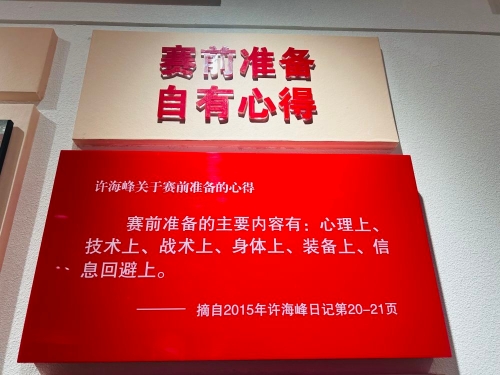 安徽省体育博物馆内,许海峰关于赛前准备的心得。新华社记者 周畅 摄