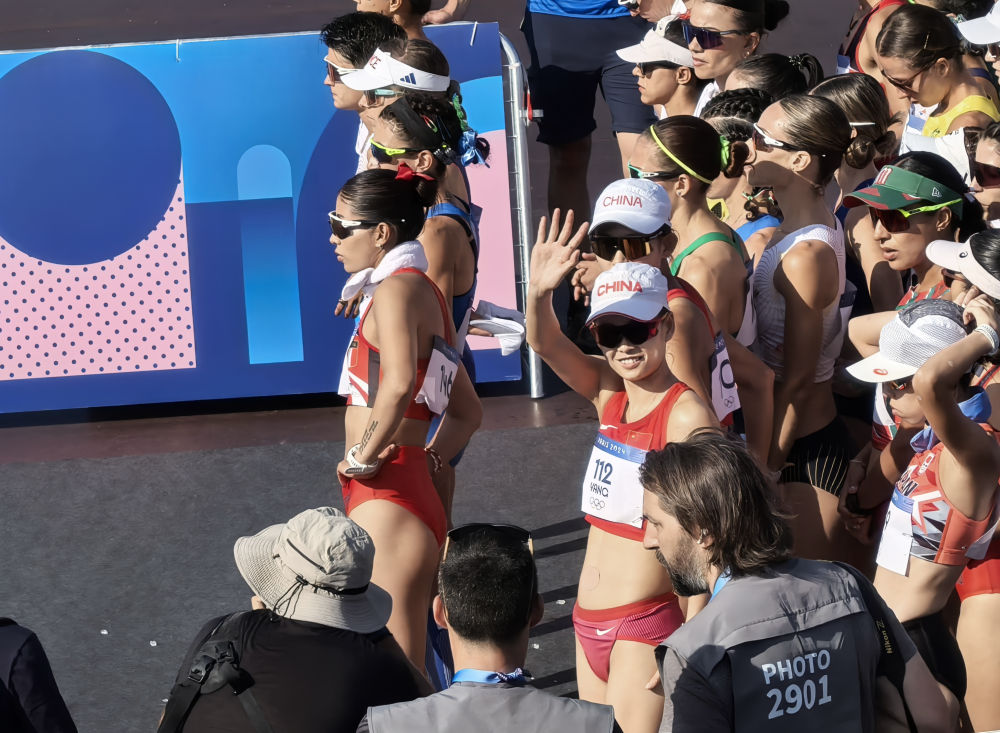 8月1日,杨家玉(图中挥手者)在比赛开始前。新华社记者 吴俊宽 摄