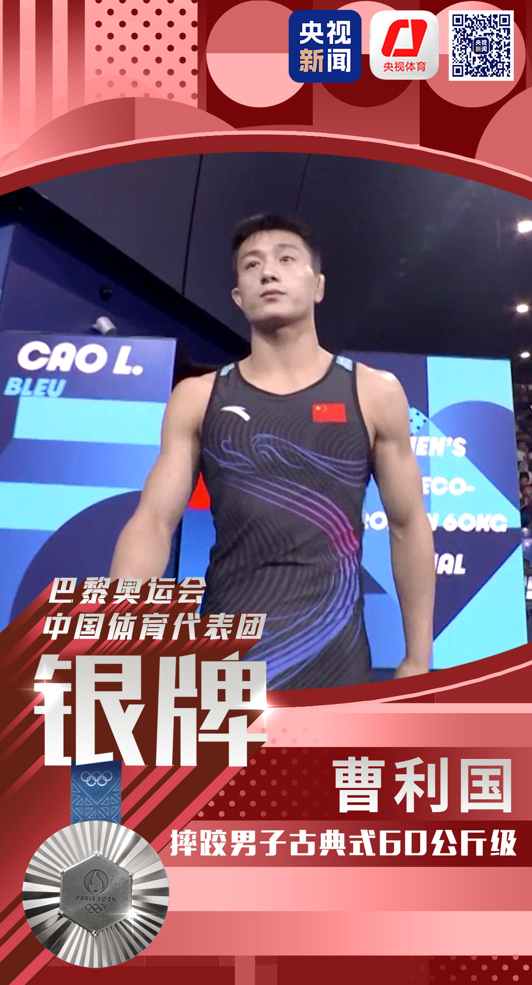 央视新闻讯 北京时间8月7日,在巴黎奥运会摔跤男子古典式60公斤级金牌赛中,中国选手曹利国获得银牌。