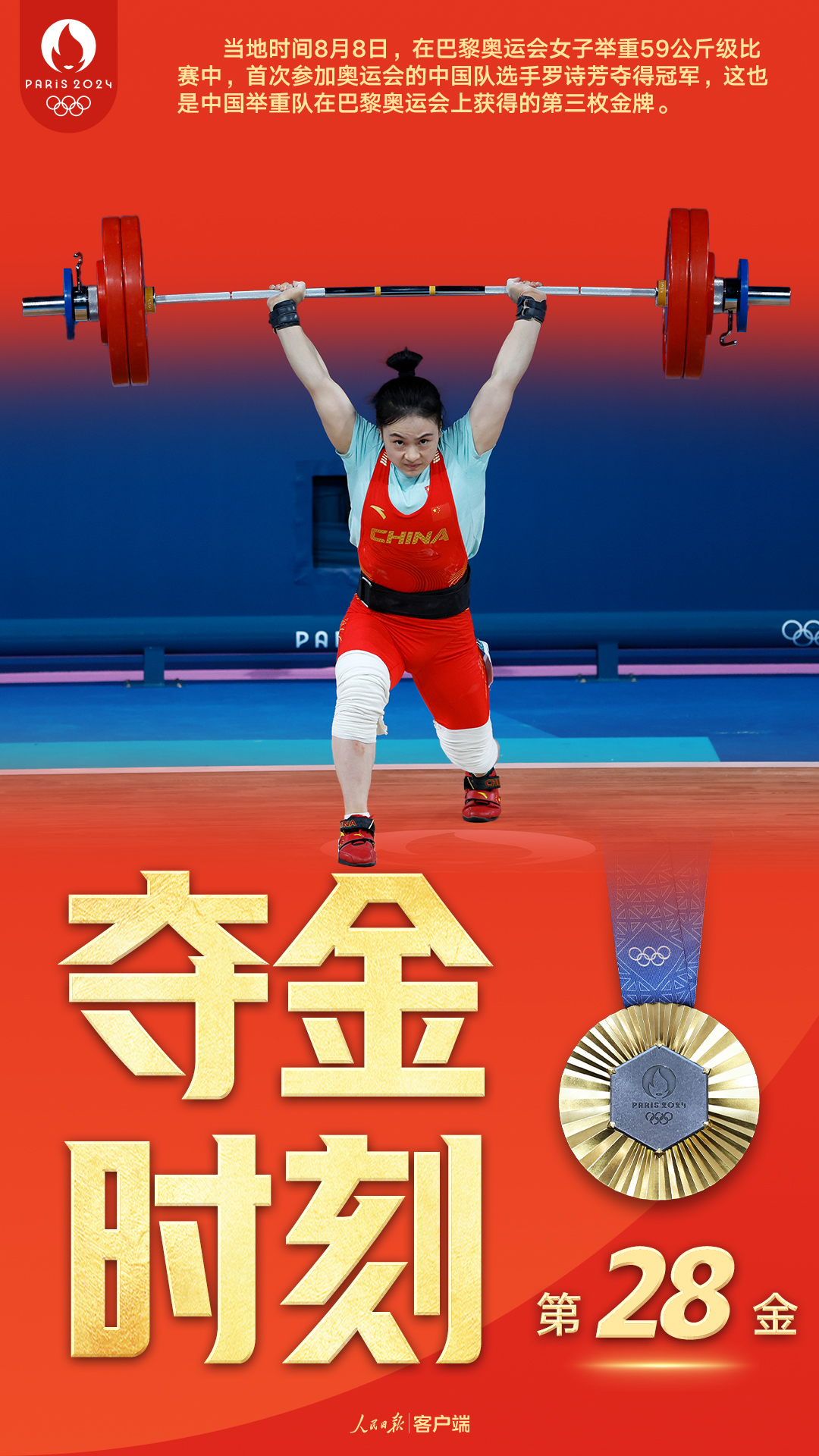 人民日报客户端讯 最大的舞台,激发最好的自己。首次参加奥运会,23岁的罗诗芳展现出大将风度。作为女子举重59公斤级总成绩世界纪录保持者,她在巴黎奥运会赛场五次试举全部成功,创造抓举、挺举和总成绩三项奥运会纪录,让中国举重队收获“稳稳的幸福”。