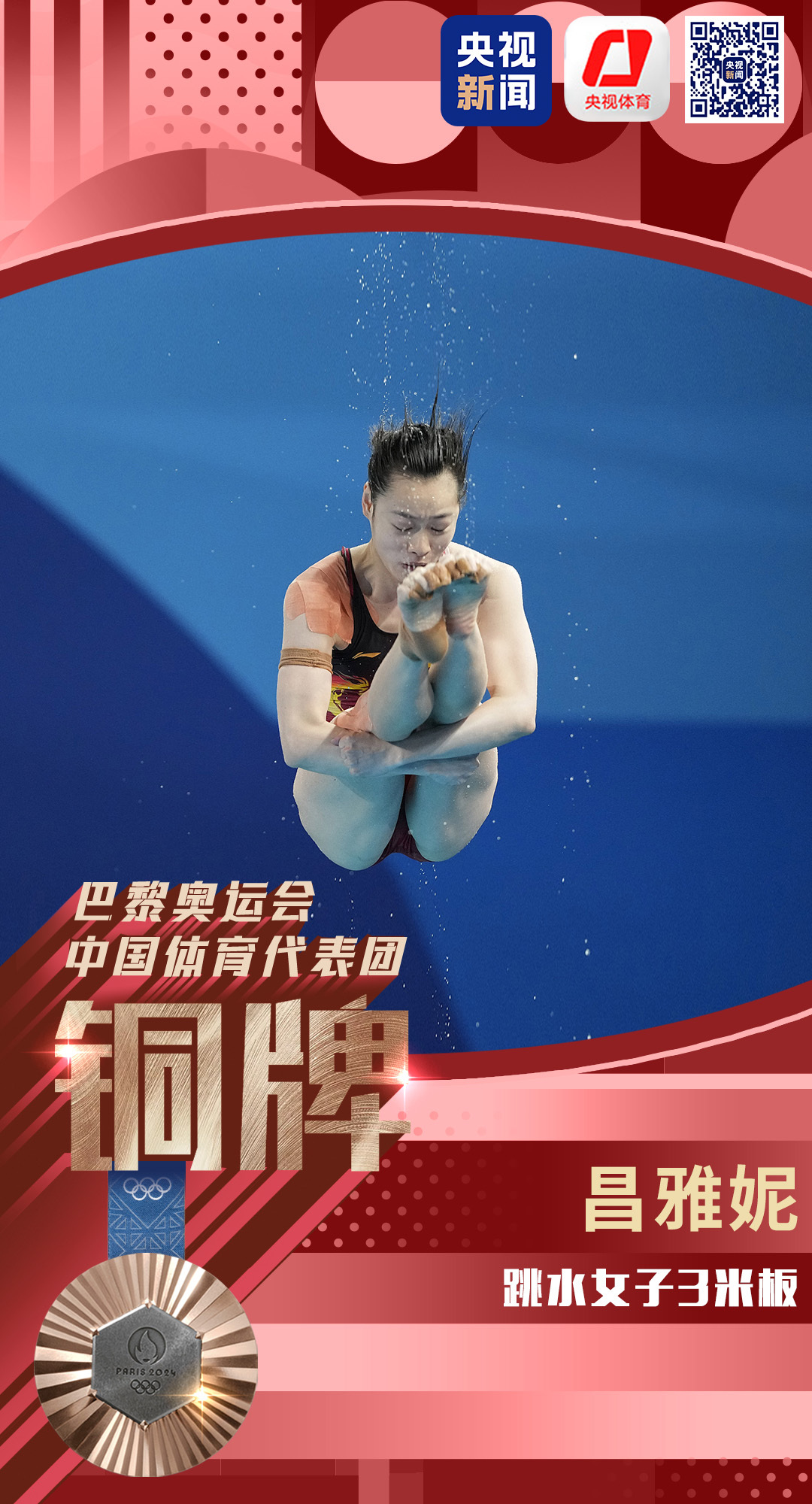 央视讯 8月9日,在巴黎奥运会跳水女子3米板决赛中,