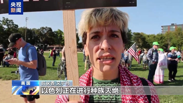 抗议者 艾尔玛:以色列正在进行种族灭绝。我们需要停止向一个实施种族灭绝的国家出售武器,我们需要真正的政治变革,需要对本届美国政府和下届政府的政策作出真正的实质性的改变。