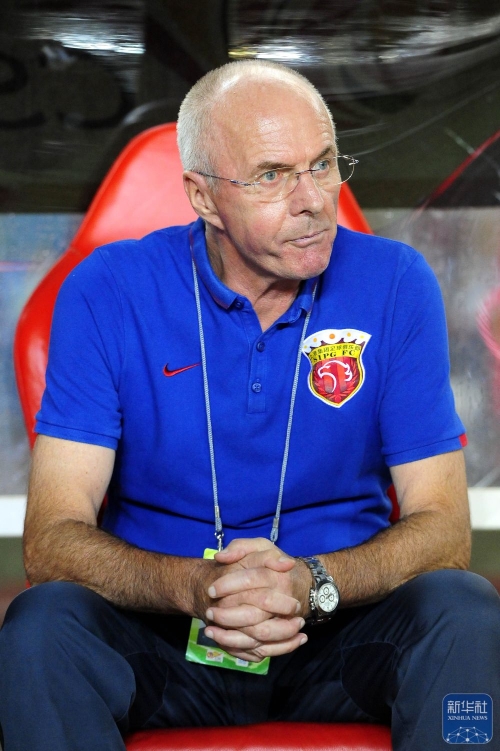 ↑这是时任上海上港队主教练斯文-戈兰·埃里克森在2015赛季中超联赛第22轮河南建业队主场对阵上海上港队的比赛中(2015年8月12日摄)。新华社记者 李博摄
