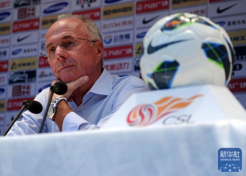 ↑这是时任广州富力队主教练斯文-戈兰·埃里克森在2013赛季中超联赛第14轮广州富力队主场对阵天津泰达队的比赛前(2013年6月26日摄)。新华社记者 刘大伟 摄