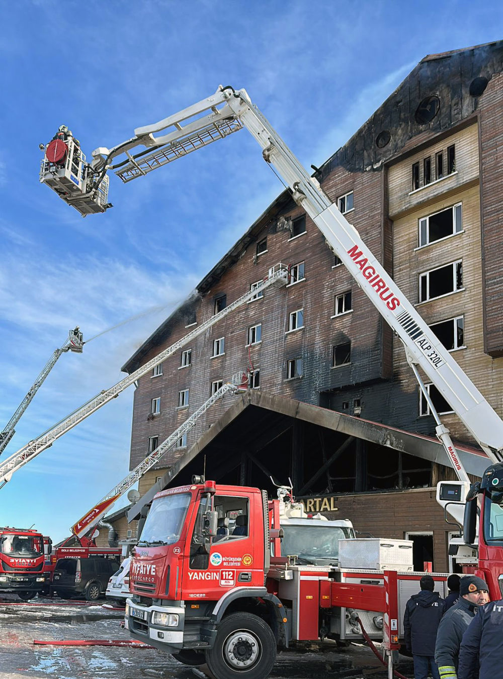 ↑1月21日,在土耳其卡塔尔卡亚,消防员在发生火灾的酒店工作。新华社发(穆斯塔法·卡亚摄)