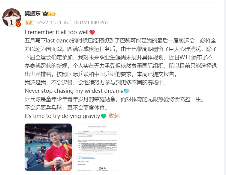 图源 樊振东微博