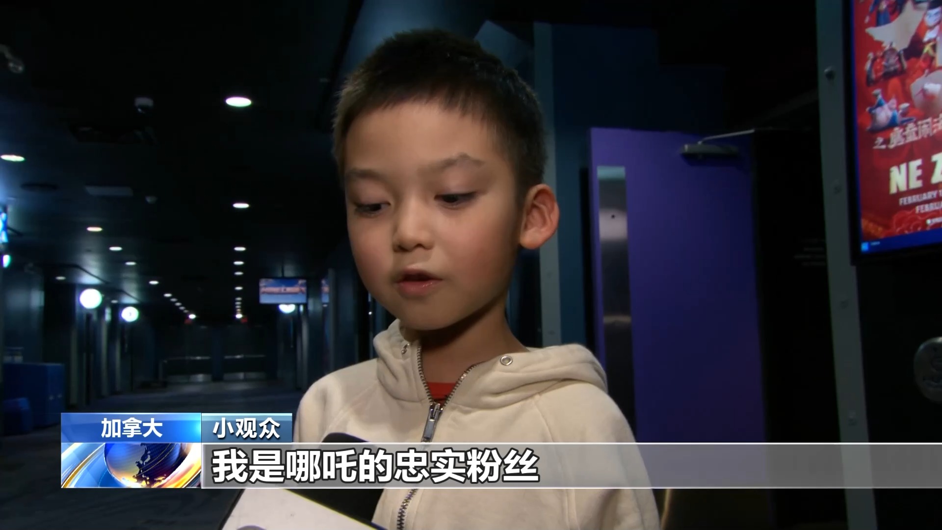 总台记者 张颖哲:看!这是什么?《哪吒2》的票,我昨天到今天终于抢到了,不管是在网上还是在线下,真的可以说是一票难求。这里是温哥华《哪吒2》点映的影院,2月14日将正式上映,看《哪吒2》了。