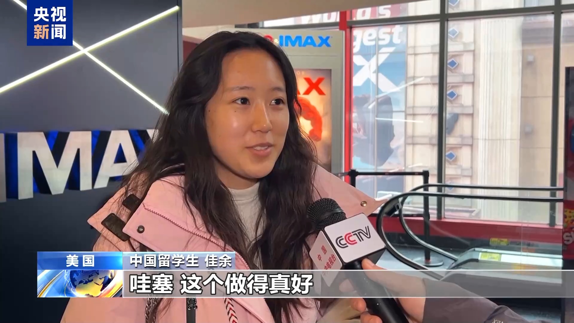 中国留学生 佳余:这一场也是和朋友约好了,抢了票才过来看的。《哪吒2》整个的特效动画都做得非常优秀。我观看的过程中就一直在跟朋友感叹,哇塞,这个做得真好,然后太帅了。
