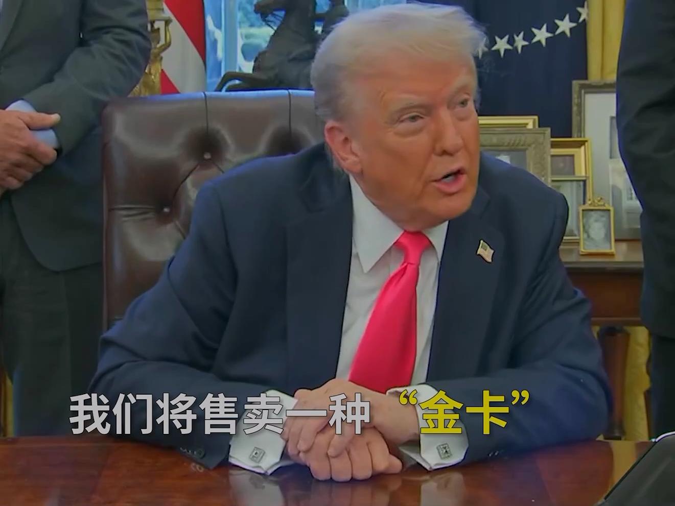 我们将售卖金卡。你有绿卡,这是一张金卡。我们将给这张卡定价在500万美元左右,这样你就能获得绿卡的待遇,而且这也是获得(美国)公民身份的一条途径。富人将通过购买这张卡进入我们的国家。”