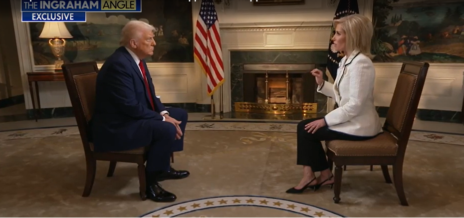 当地时间18日,美国《纽约邮报》等媒体报道了特朗普在福克斯新闻频道“英格拉汉姆角”节目中的录制采访片段。 图源:外媒视频截图