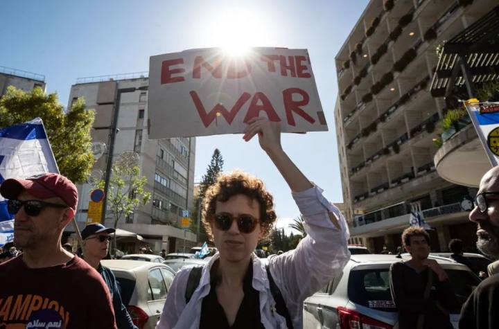 3月19日,人们在位于耶路撒冷的以色列总理府附近参加集会。当日,耶路撒冷爆发大规模民众集会游行,抗议以色列恢复对加沙地带的军事行动。新华社记者陈君清摄