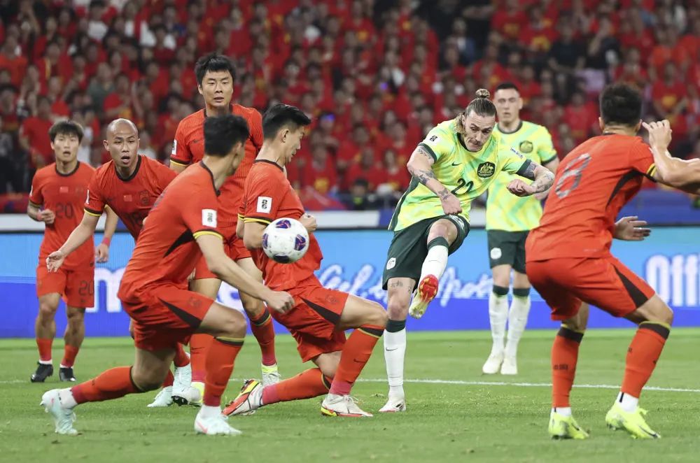国足坐镇杭州主场迎战澳大利亚队。第16分钟,澳大利亚队杰克逊·欧文禁区内持球连续摆脱,中国队两名球员先后倒地拼抢,仍未能阻止前者左脚兜射破门。第29分钟,澳大利亚队尼尚·韦卢皮莱禁区内凌空抽射打在中路,中国队门将王大雷扑球脱手,皮球滚入球门。第34分钟,此前在对抗中受伤的曹永竞被拜合拉木替换下场。下半场比赛,归化球员塞尔吉尼奥迎来首秀,汪海健和小将王钰栋替补出场,国足一度占据场面主动,但并未取得进球,最终0:2落败。