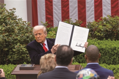4月2日,美国总统特朗普在首都华盛顿白宫展示签署后的所谓“对等关税”行政令,宣布对贸易伙伴加征10%的“最低基准关税”,并对某些贸易伙伴征收更高关税。据新华社