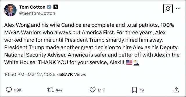 因为黄之瀚曾给汤姆·科顿工作过,这些美国网民还包围了汤姆·科顿的社交媒体账号,导致他不得不发文自证清白,结果越描越黑。这个成天诬陷别人“勾结中国”的反华政客,最终在自己评论区被人骂成了“中国间谍”。