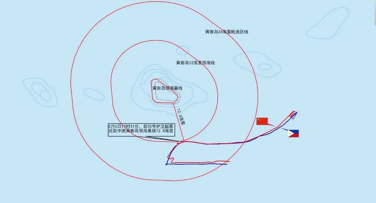 南部战区新闻发言人田军里空军大校表示,5月5日,菲35号护卫艇企图侵闯中国黄岩岛领海,中国人民解放军南部战区组织海空兵力,依法依规跟踪监视、警告驱离,有力有效阻止菲艇侵入中国领海,现场操作专业规范、正当合法。菲方有关言论罔顾事实、混淆视听,妄图误导国际认知。黄岩岛是中国固有领土。我们正告菲方立即停止侵权挑衅和歪曲炒作。战区部队时刻保持高度戒备,坚决捍卫国家主权安全和海洋权益,坚决维护南海地区和平稳定。