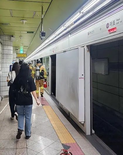 据警方和目击者称,5月31日上午8点43分,一列地铁行驶至5号线汝矣渡口站至麻浦站之间时发生火灾。嫌疑人将燃料罐带入车厢,随后用点火器纵火。