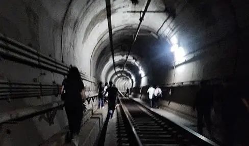 乘客通过地铁隧道撤离