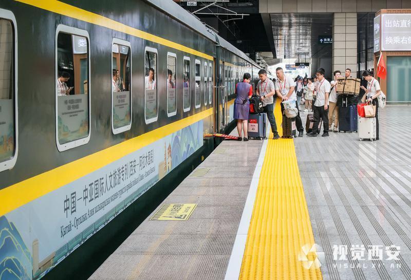 5月29日,一个阳光灿烂的日子,中国—中亚国际人文旅游专列(西安—阿拉木图段)从西安站开行了。二百余位乘客坐着这班开往中亚的列车,即将开启一段美好的旅程,西安和阿拉木图,两个古丝绸之路上最重要的城市,因为这班列车,跨越千年的风霜,再次携手同行!