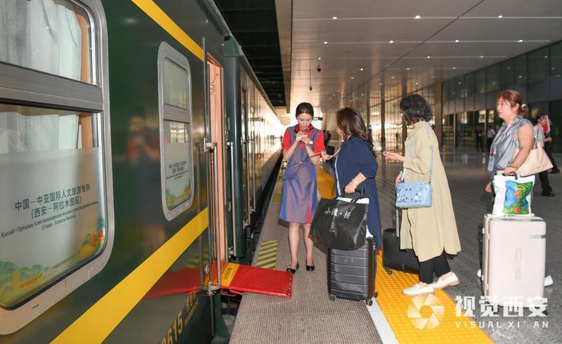 “此次中国—中亚国际人文旅游专列的开行,是铁路助力‘一带一路’人文交流的生动实践,我们将以安全优质的运输服务,为旅客营造温馨、舒适,充满文化氛围的乘车环境,将专列打造成陕西对外开放的‘流动名片’,成为助力中国与中亚国家民心相通的‘丝路快车’。”中国铁路西安局集团有限公司客运部副主任惠利霞说。