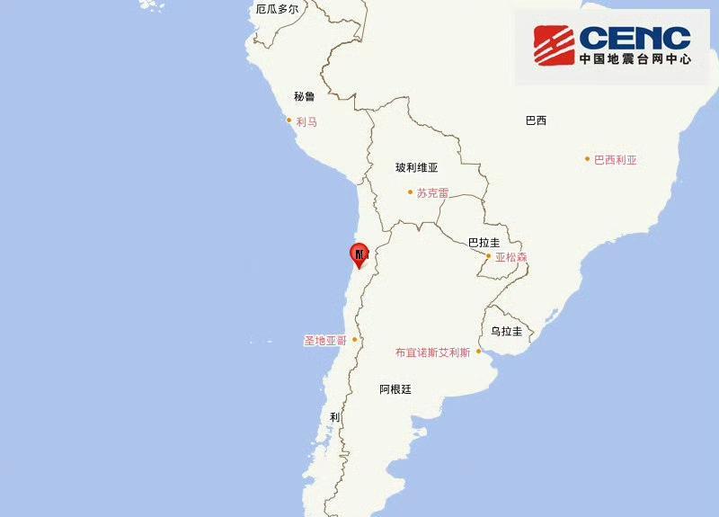 智利北部发生6.4级地震 震源深度70公里