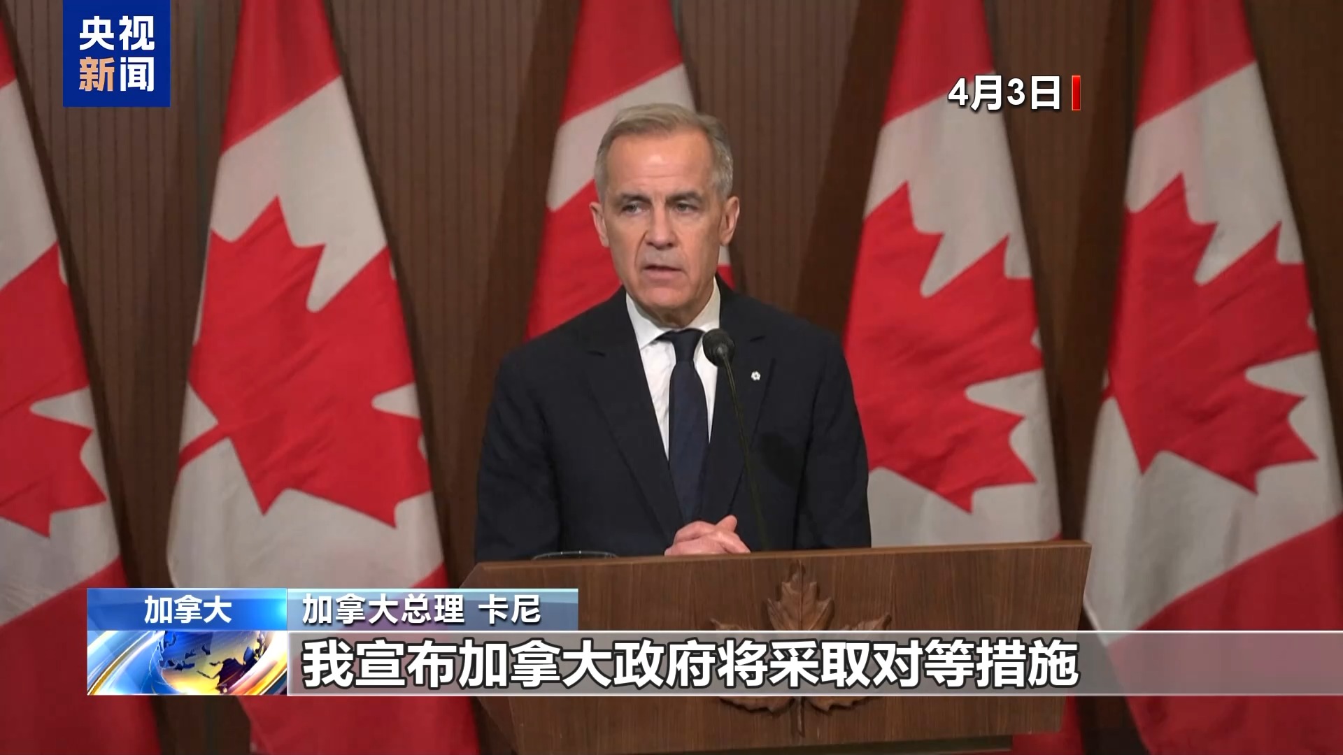 加拿大总理 卡尼:我宣布加拿大政府将采取对等措施,对不符合《美墨加协定》的美国进口汽车,征收25%的关税。