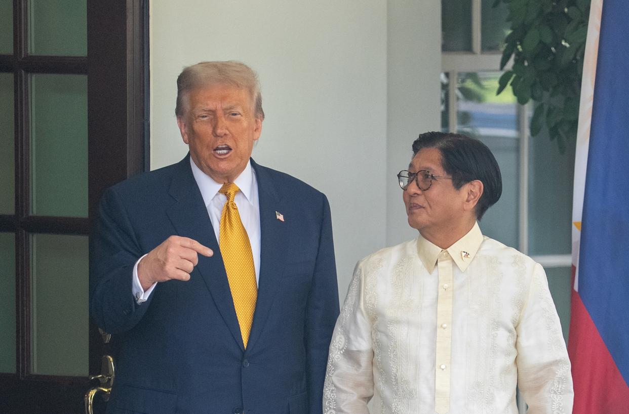 7月22日,美国总统特朗普(左)在华盛顿白宫欢迎到访的菲律宾总统马科斯。新华社记者 胡友松 摄