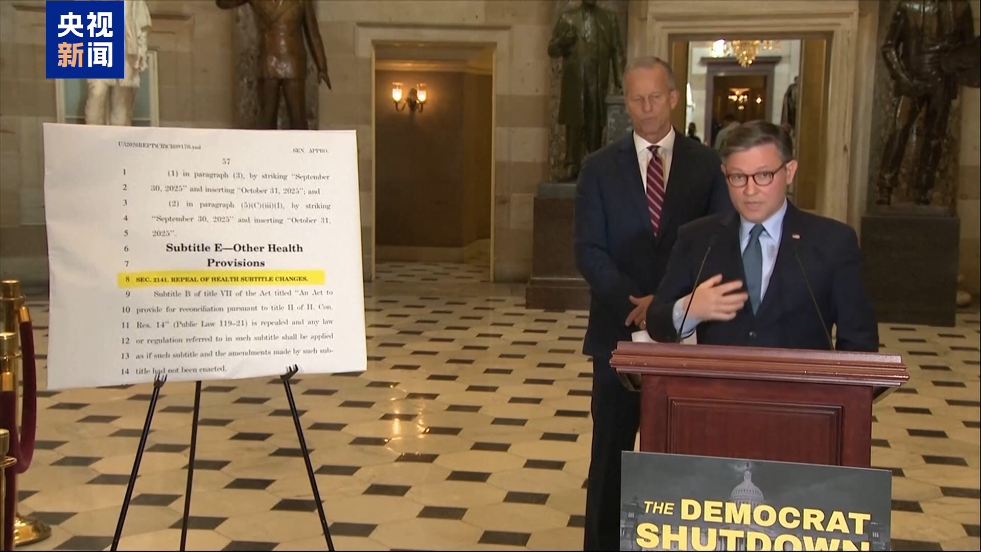 当地时间3日,美国国会众议院议长、共和党人迈克·约翰逊将美国政府“停摆”原因甩锅给民主党,称共和党在负责地、真诚地行事,民主党却在“玩弄政治”。国会参议院共和党领袖约翰·图恩也指责民主党挑动党争,连续多次否决临时拨款法案,“挟持联邦政府和美国人民”。