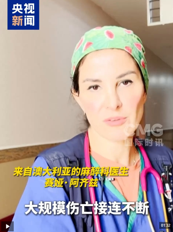 其中的麻醉科医生赛娅·阿齐兹说,以军的持续轰炸让加沙医院不堪重负,大规模伤亡数量之多,让人根本应付不过来。