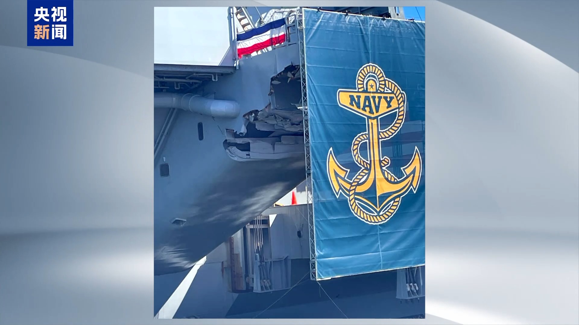 然而,在10月5日诺福克海军基地举办美国海军成立250周年庆典期间,一名在场美军水手向 “商业内幕”网站提供的照片显示,特朗普身旁的“杜鲁门”号航母悬挂着巨幅海报,而海报恰好遮住了该舰此前碰撞受损的部位。